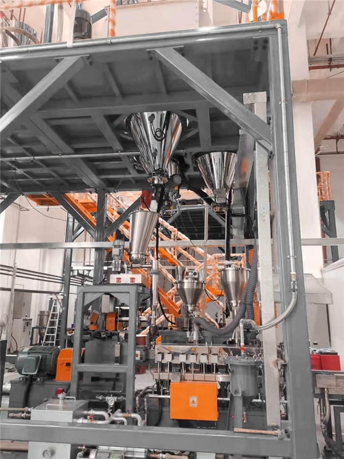 失重式喂料機(jī)由料斗、喂料器(單、雙軸螺旋喂料器)、稱重系統(tǒng)和調(diào)節(jié)器組成,在操作中,料斗、物料和喂料器共同連續(xù)地進(jìn)行稱重。隨著物料送出后,測(cè)量真實(shí)的失重速率,并將它與所需要的失重速率(設(shè)定值)加以比較。通過(guò)調(diào)解喂料器速率來(lái)自動(dòng)修正偏離設(shè)定點(diǎn)的偏值。從而可以均勻準(zhǔn)確地連續(xù)喂送物料。