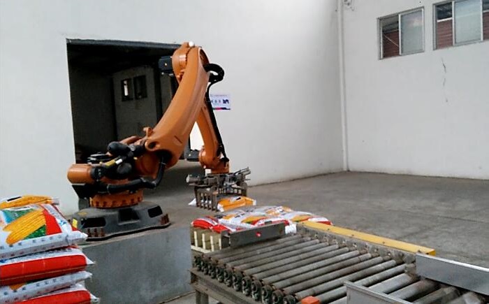 機械手碼垛機可對各種包裝袋、包裝箱進行碼垛,具有堆垛速度快、自動化水平高的特點;碼放時全自動分層編組,自動化程度高;機械手碼垛機模塊化設計,設備的穩(wěn)定性高,對托盤的適應能力強,只需在觸摸屏上作修改,不影響正常生產(chǎn);機器人本體由質(zhì)量輕、硬度高的高質(zhì)航空合金鋁制作,運行能耗低。